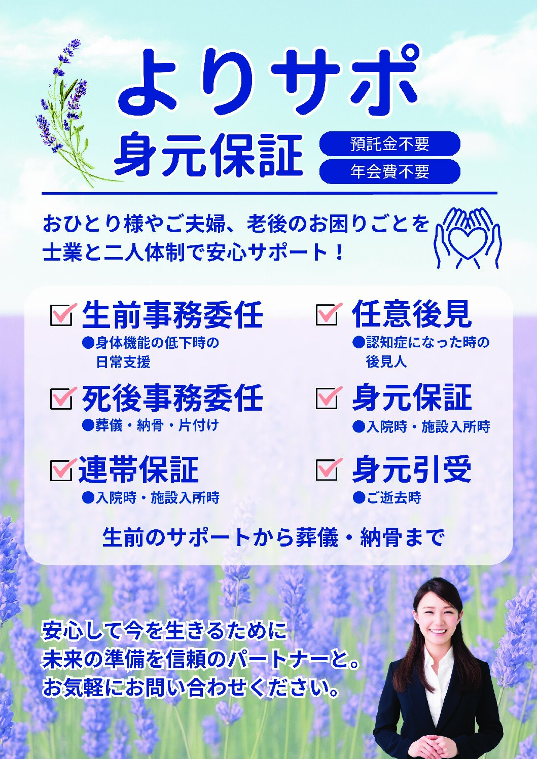 よりサポ身元保証プランは、電話での説明、ネット加入は受付しておりません。お申込ご検討の方は、弊社、または代理店までご連絡下さいませ...